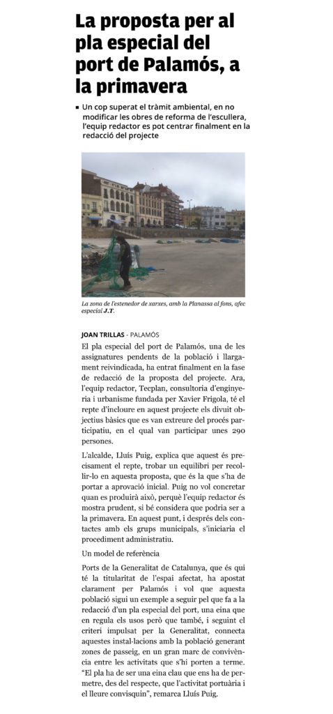 TECPLAN té el repte d’incloure els divuit objectius bàsics que es van extreure del procés participatiu dins del Pla Especial del Port. Es continuarà treballant per tenir enllestit el Pla, tot i la seva gran complexitat, en la màxima brevetat possible.
